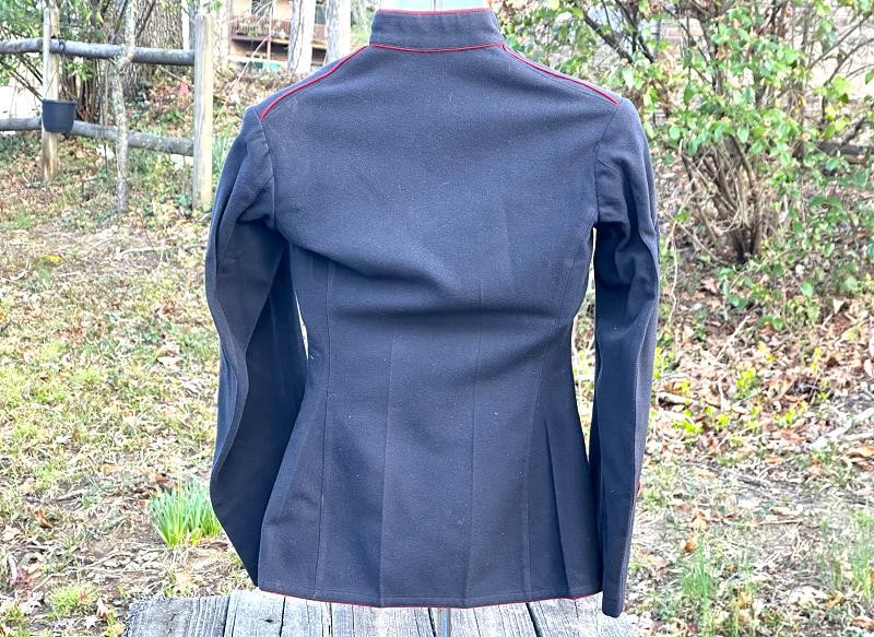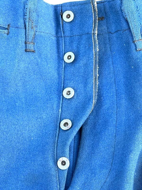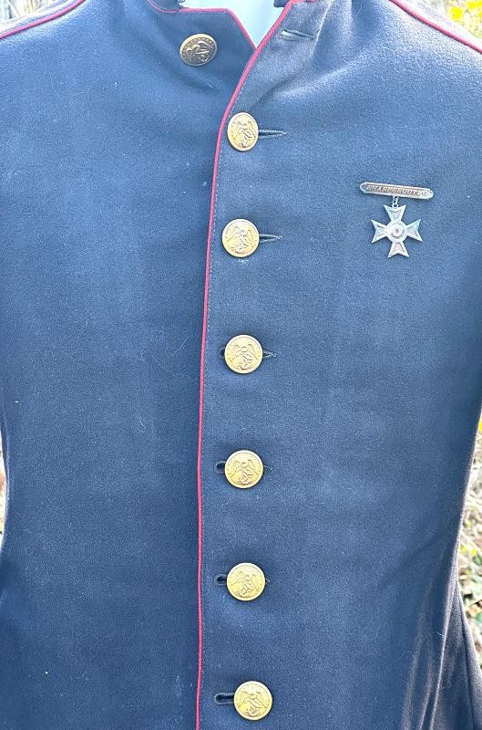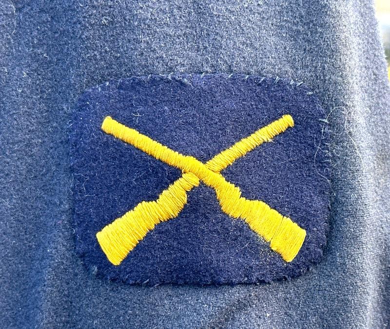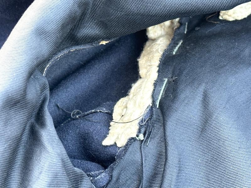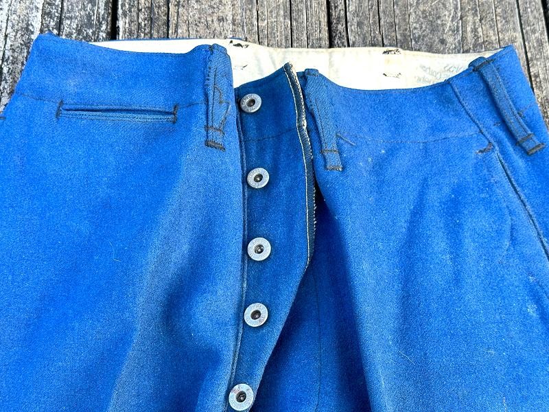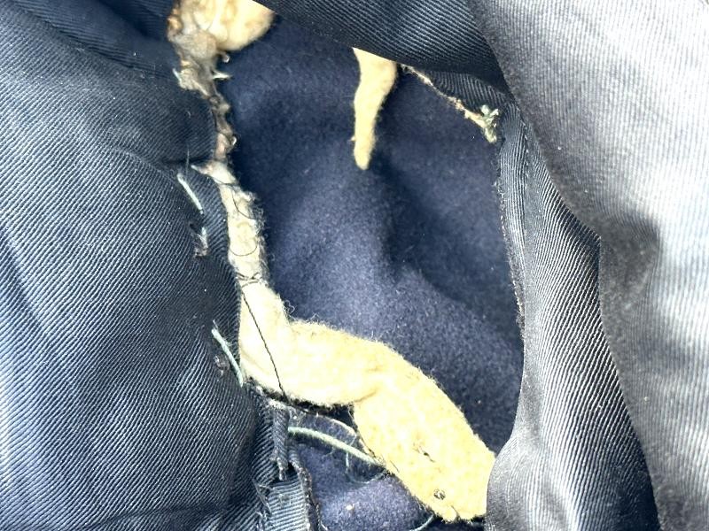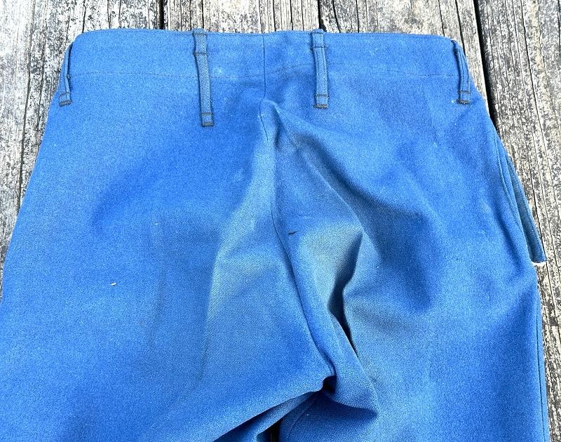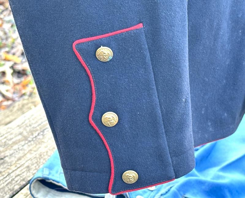 This is a set of United States Marine Corps dress blues from the early 1920's identified to Private First Class Charles C. Hale. Like all Marine dress blues prior to 1947, there are no external pockets. It has the false epaulets on the shoulders. The seven button coat has the gold USMC eagle, anchor and 13 star buttons, with eight smaller buttons of the same type for the cuffs and epaulets. The coat size buttons are all back marked N.S. MEYER NEW YORK. The smaller buttons are all very securely attached and I can't see the back marks. The coat is fully lined and has two inner pockets, one on each side. The sleeve linings have been removed, a common practice with Marines stationed in hotter climates. Unfortunately this makes it difficult to date the jacket, as the Marine Corps Quartermaster stamp and date are located in the left sleeve lining. The initials of the marine's first and middle name followed by his last name are normally found in the right sleeve lining. Fortunately, printed in ink on the inside of the right inner pocket is CC. HALE. Each sleeve has a set of gold crossed rifles sewn onto a blue wool background. This indicated the rank of Private First Class, an insignia used by the Marine Corps from 1917 to 1922. The collar is adorned with a set of 1920's eagle, globe and anchor insignia. There is a Marine Corps Sharpshooter qualification badge pinned on the left breast of the jacket. There is no damage on the jacket, but it could use a good cleaning! The trousers are in excellent condition, no stains, rips tears or repairs and no moth holes. Written in ink on the left side of the waist band is C C HALE, along with the ink stamped Quartermaster's Dept. U. S. Marine Corps and dated 1921-22. C. C. HALE is also ink stamped into the right waist band of the trousers. Charles C. Hale is shown on the first Marine Corps muster roll in June, 1917 as a Private at Recruit Depot, Marine Barracks, Navy yard, Norfolk, Virginia. In July, 1917 he is shown in Company D, Recruit Depot in Norfolk, Virginia. From there is is assigned to 75th Company, 1st Battalion, 6th Marine Regiment at the Marine barracks in Quantico, Virginia. In August, 1917 he was attached to 77th Company, 1st Machine Gun Battalion, Marine barracks, Quantico, Virginia. November, 1917 shows him assigned to Headquarters Detachment, 1st Machine Gun Battalion. In January, 1918 he is attached to 77th Company, 6th Machine Gun Battalion, Marine Corps AEF. In April, 1918 he is shown in the 23rd Company, 6th Machine Gun Battalion. In June, 1918 he is back in 77th Company, 6th Machine Gun Battalion. Charles C. Hale continues to show up in Marine muster rolls until 1926. While researching this marine I did find there was another C C Hale in the 6th Machine Gun Battalion, but he was killed in July, 1918. The 77th Company of the 6th Machine Gun Battalion supported the 3rd Battalion, 5th Marine Regiment during their time in the AEF. This set of dress blues remains in very good condition, and will make a nice addition to any WWI collection.