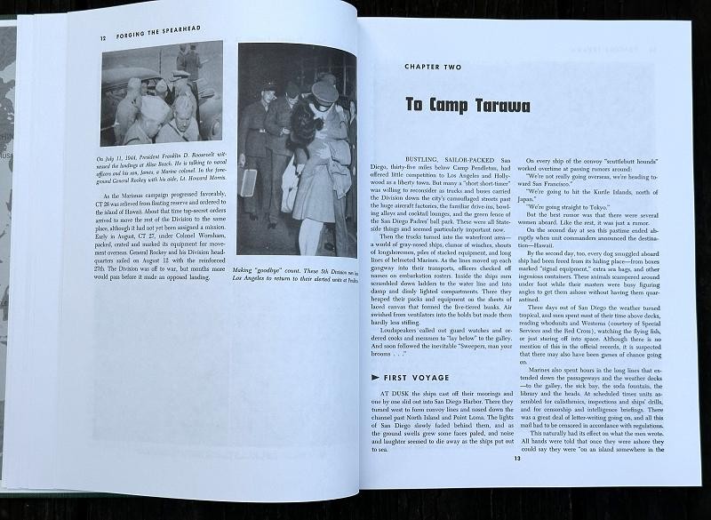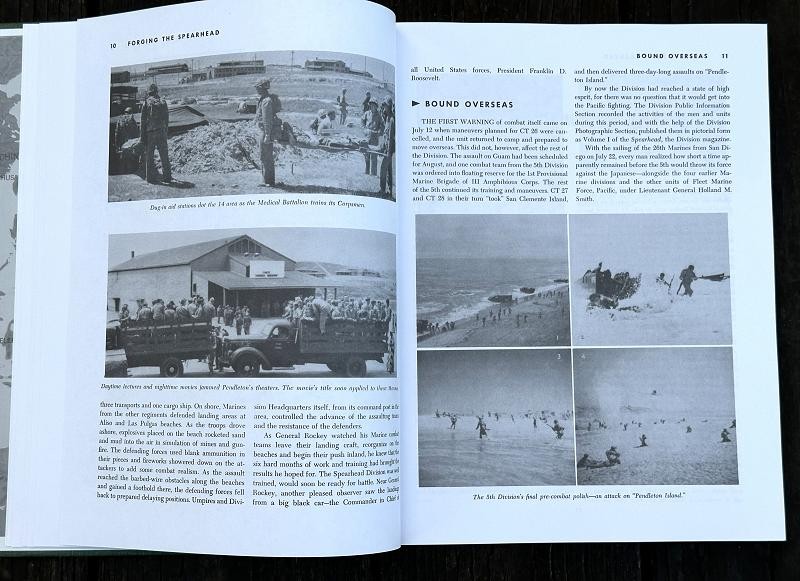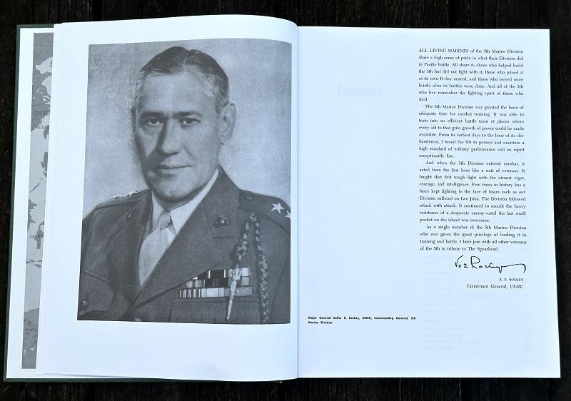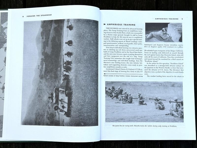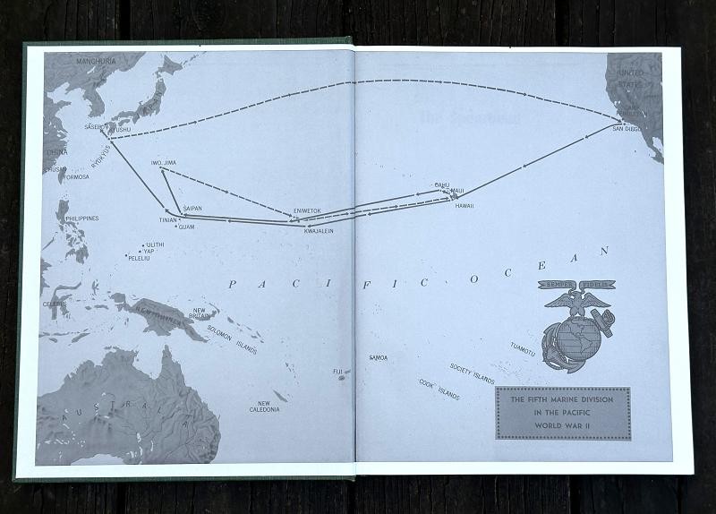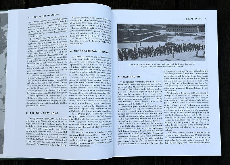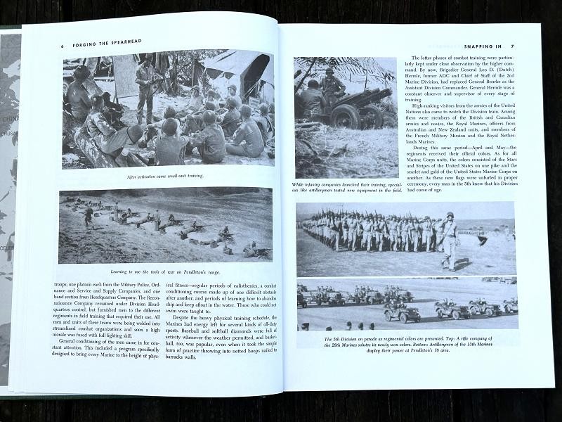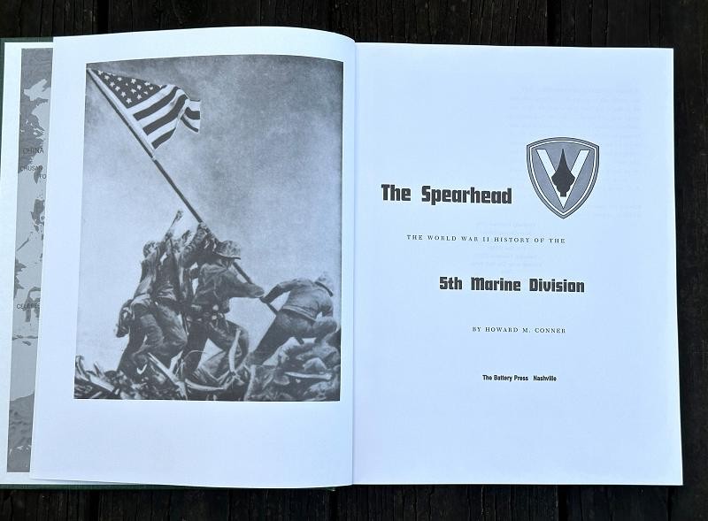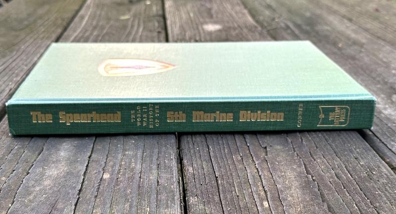 This book was written by Howard M. Conner, originally published in 1950, this edition was published in 2001. The narrative is 176 pages and is illustrated with photos and maps. This book is a second edition that was published by the Battery Press at Nashville, Tennessee. This is the definitive unit history of the 5th Marine Division in World War II. This book covers their formation and training, their invasion of Iwo Jima and their subsequent occupation of Japan. The Spearhead is filled with both color and black and white photos as well as many maps. The appendices include lists of all the division's men who were killed or wounded throughout the war. There is a section on awards, decorations and a full division roster by unit. This hard back book is in very good condition and does not have a dust cover. This is a must have reference for any Fifth Marine Division collector.