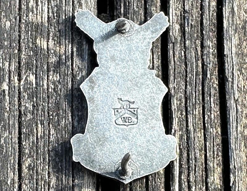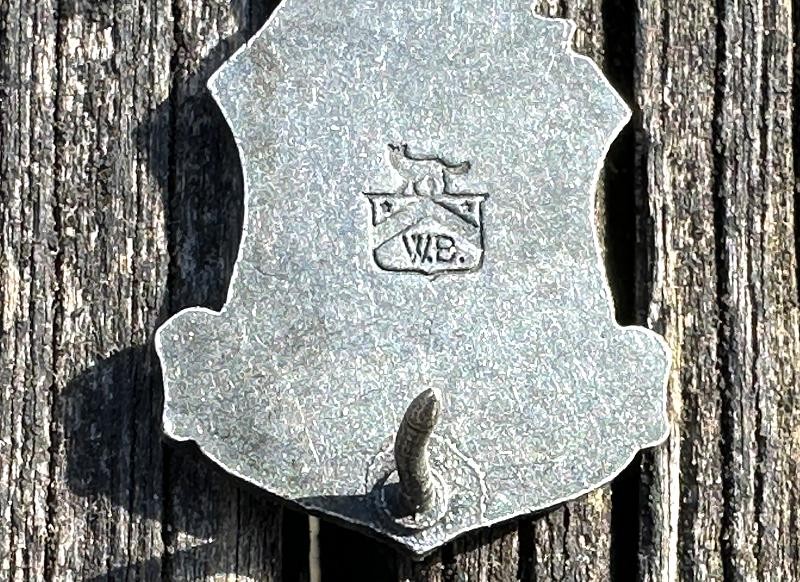 This is a silver badge for the Reserve Officer Training Corps that I believe is from from the WWII era. It measures 3/4" at the widest point and 1 1/4" high. The insignia retains the majority of the original silver finish and uses pins and clutch backs, but the clutch backs are missing. It is back marked with a military style shield with a fox on the top, a star in each upper corner, a chevron with the letters WB under it. I believe this represents Wolf-Brown Inc of Los Angeles, California. The Reserve Officer Training Corps was officially established in 1916 under the National Defense Act. This federally controlled program allowed for the training of military officers at civilian colleges, and paved the way for today's JROTC and ROTC programs. This would look great in an early American officer's insignia collection.